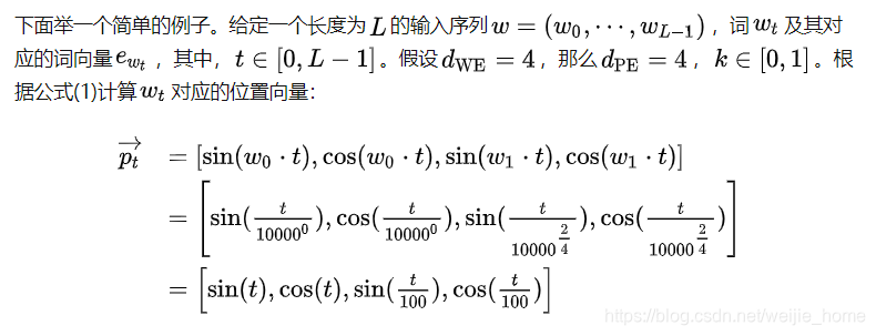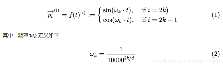 具体而言:给定一个长度为n的输入序列,t 表示词在序列中的位置,d 是位置向量的维度,生成位置向量的函数定义为:
