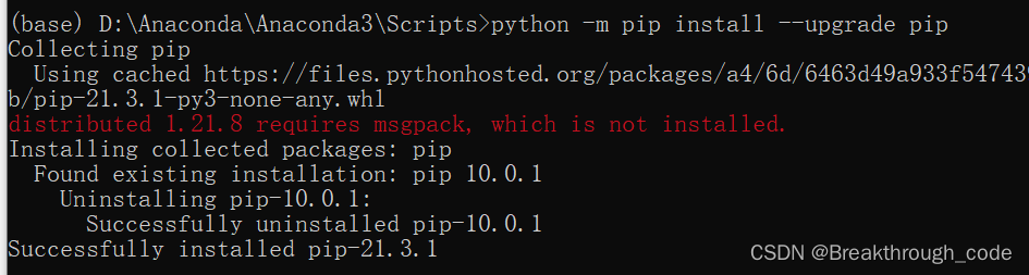 打开prompt,先跳转到你anaconda所在的盘(记得先跳转到你anaconda文件所在盘,我是教训,哈哈),我是d盘。接着用cd 命令进入Scripts文件夹
