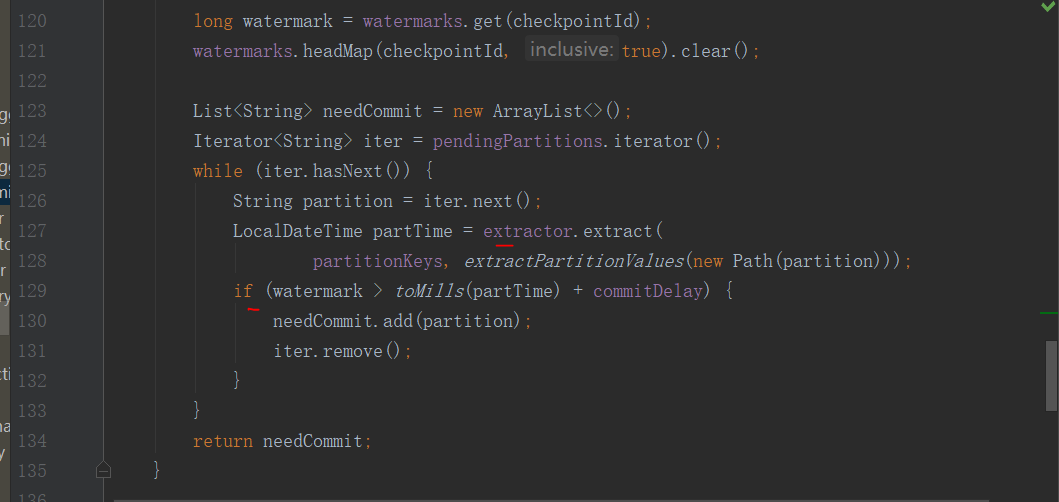2.主要是 PartitionTimeCommitTigger 类中的方法committablePartitions 用来获取需要提交分区的列表