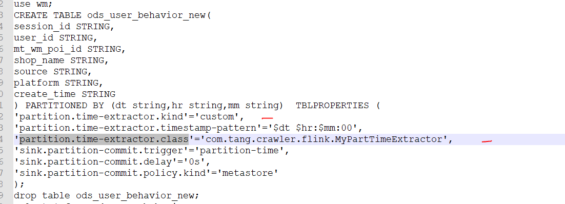 2.hive建表是添加 partition.time-extractor.kind 和 partition.time-extractor.class 属性