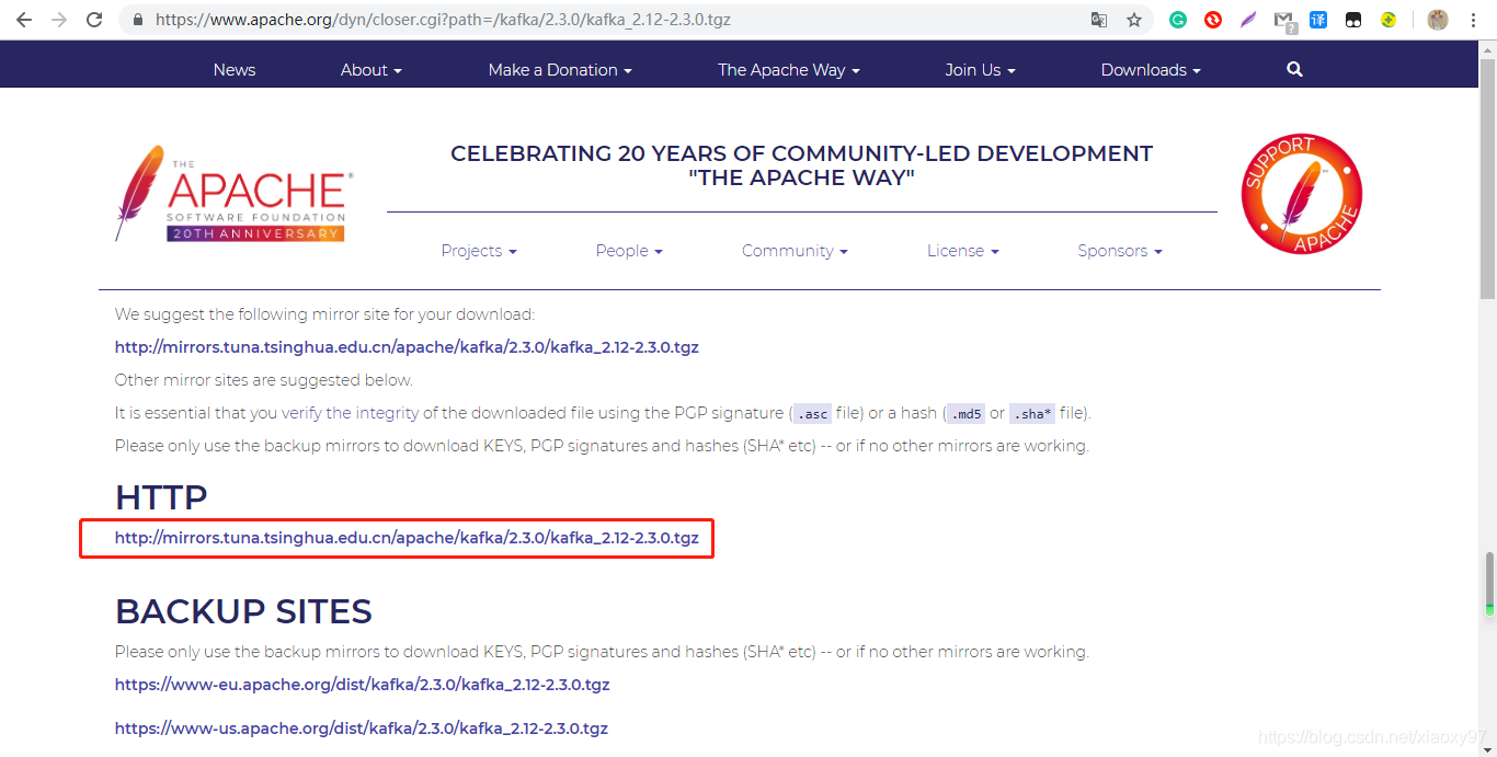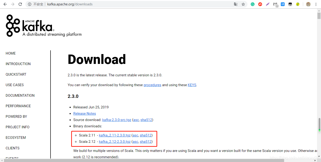 1、进入kafka官网,下载kafka最新版本。
