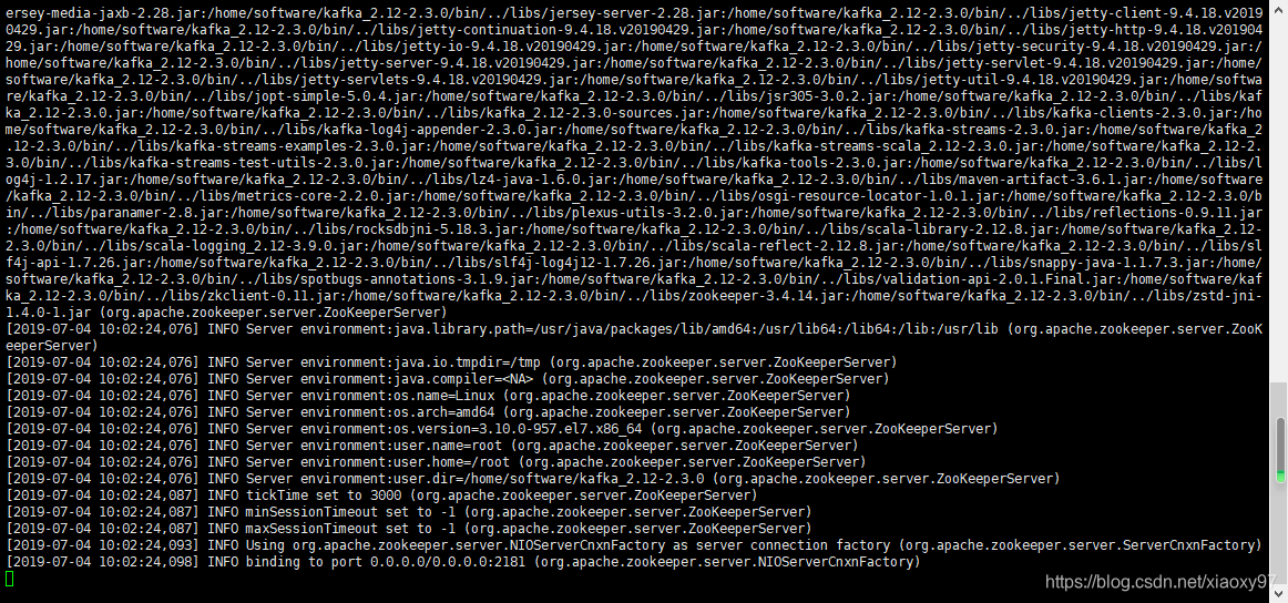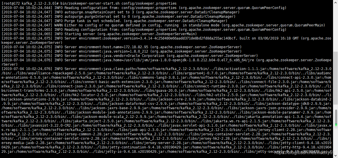 [root@172 kafka_2.12-2.3.0]# bin/zookeeper-server-start.sh config/zookeeper.properties