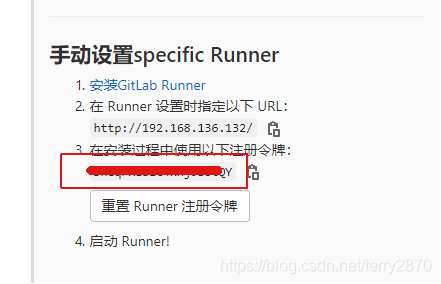 我们需要在gitlab-runner服务器上注册runner与gitlab关联。注册之前,我们必须要到gitlab项目中获取我们的token,在gitlab中 具体项目→设置→cicd,然后展开runner的按钮,在这可以看到,红框中就是我们的token