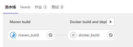 打开gitlab流水线,看到有新的任务在运行,点进去看,里面分两个步骤