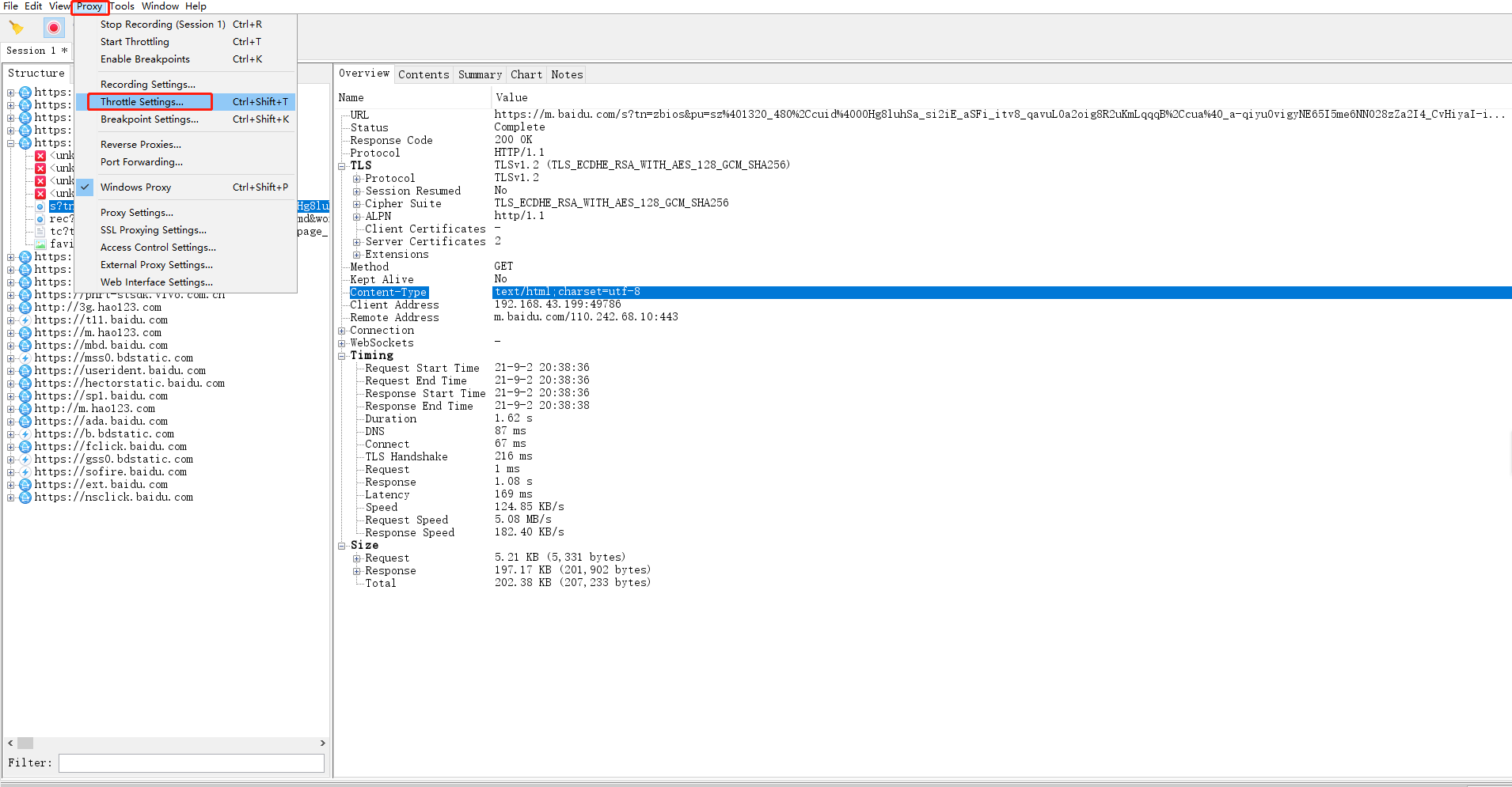 5.选择Proxy,选中Throttle
