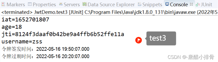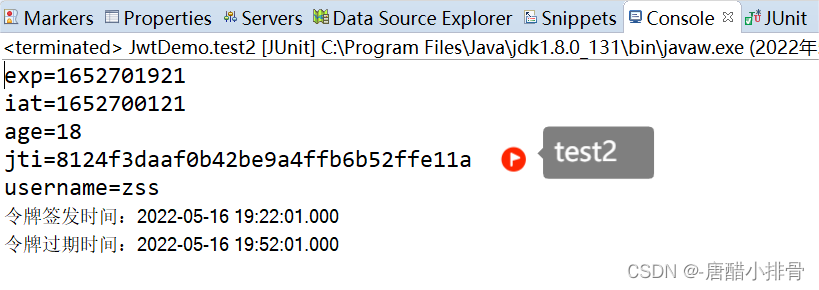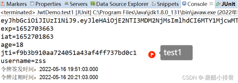 exp(Expiration time):是一个时间戳,代表这个JWT的过期时间;
