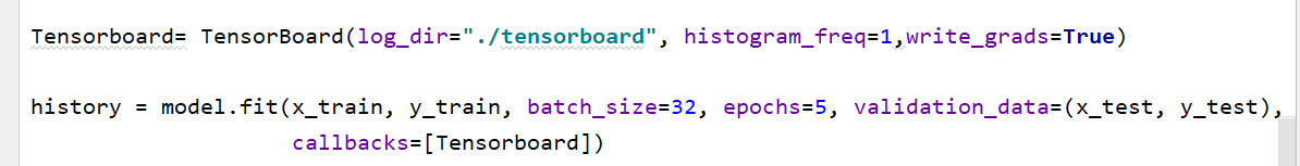变量= TensorBoard(log_dir="./tensorboard", histogram_freq=1,write_grads=True)##函数中各参数含义