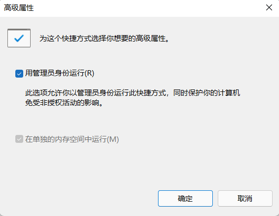 选择"属性",点击"高级",勾选上"以管理员身份运行",再点两次"确认",这样以后打开命令提示符时,就默认以管理员身份打开了