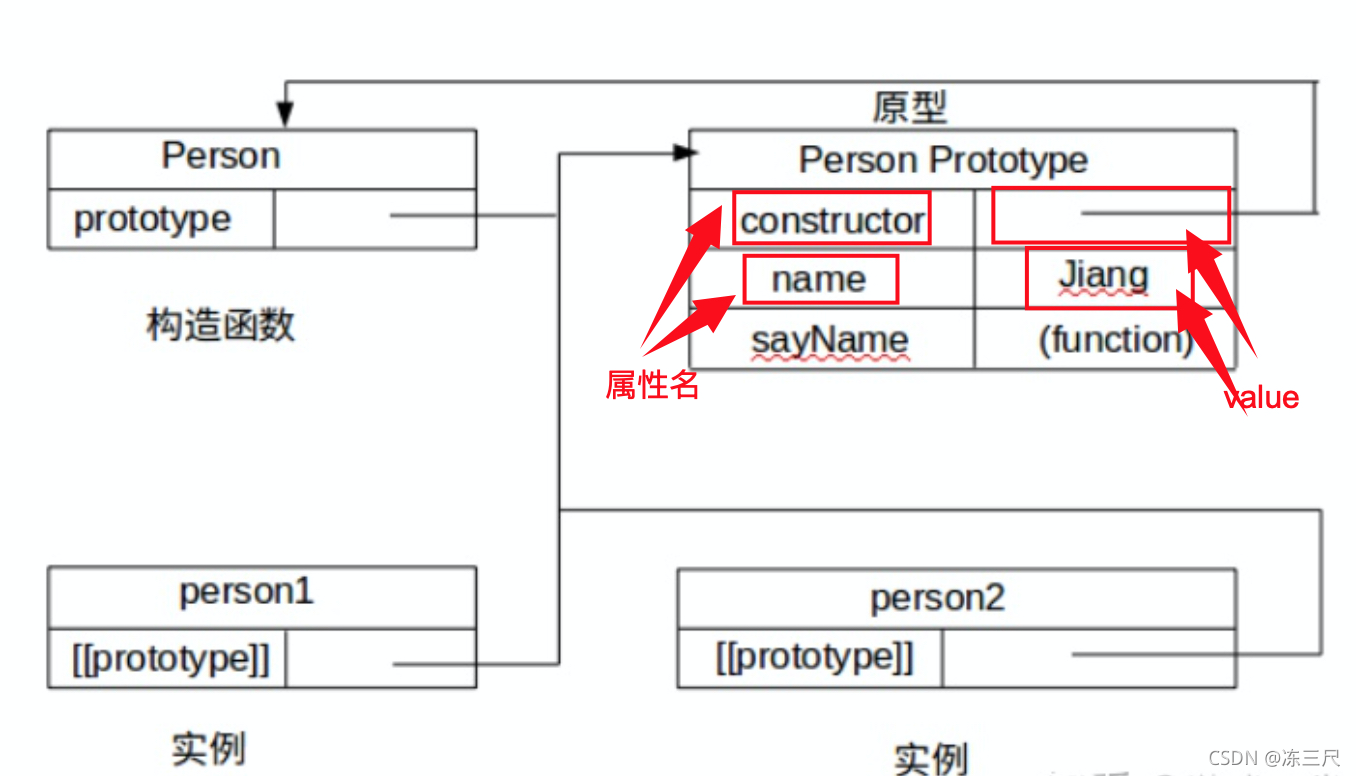 每个构造函数(Person())都有一个原型对象(prototype),原型对象(prototype)包含一个指向构造函数(Person())的指针(constructor),而实例则包含一个指向原型对象(prototype)的内部指针(__proto__)。