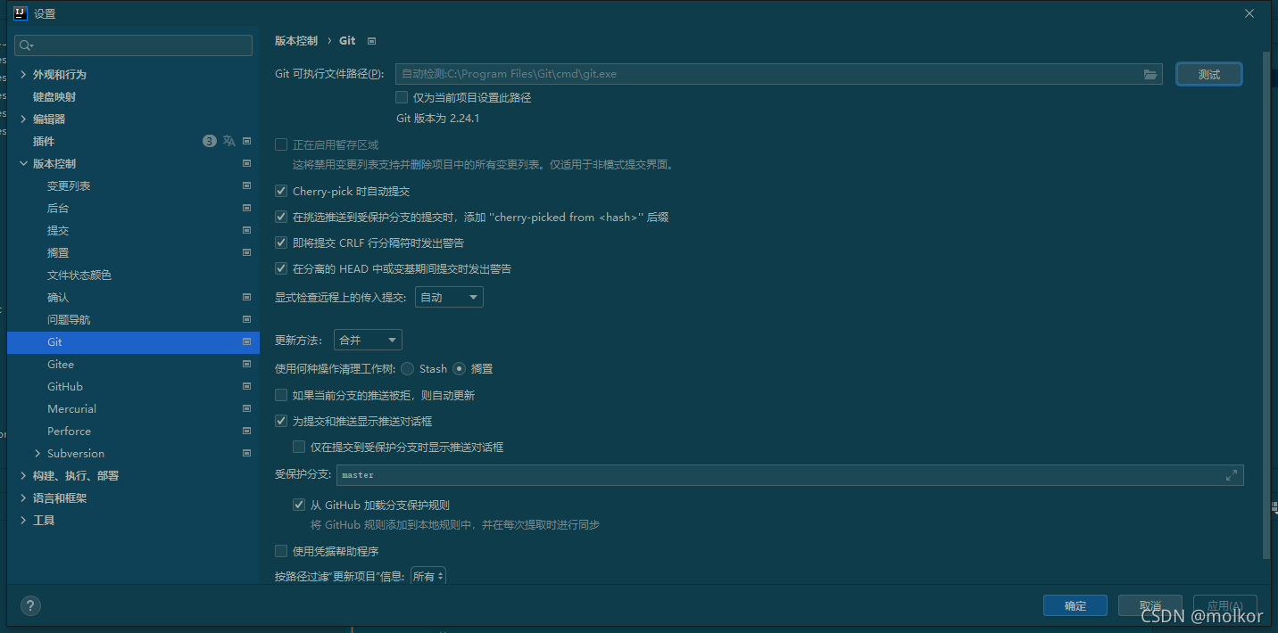 1、首先给电脑安装git,如果没安装,idea上可以一键安装,安装后,选择目录。