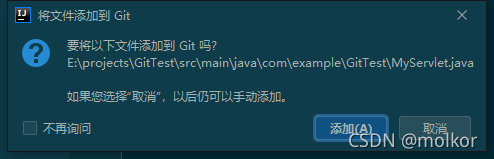 1、新增的代码,会跳出是否添加到git,如果想上传的话,可以点添加