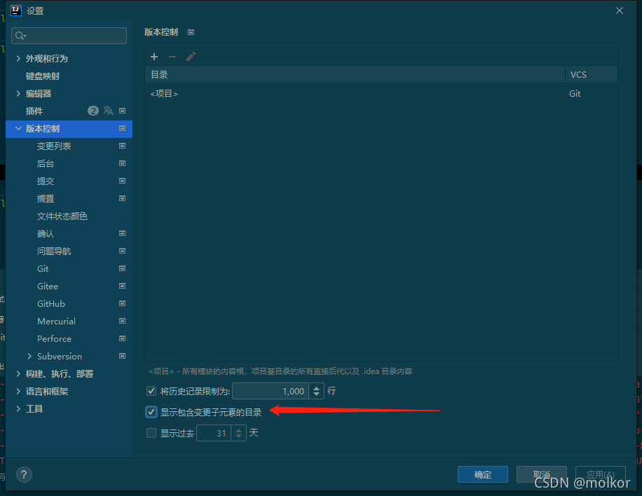 3.1、在设置中勾选这个按钮,这样有变动的目录,也会跟着变色