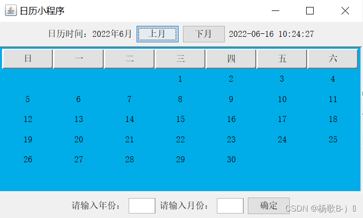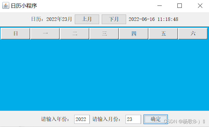 //上面代码类获取实时时间代码的部分,如果不需要可以在CalendarFrame类中自行找出来删掉