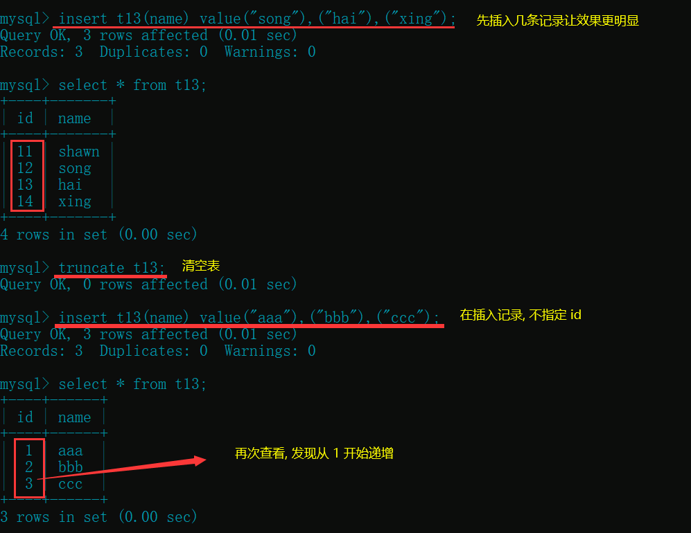 insert t12 value("127.0.0.1",8091); # 单个字段可以相同