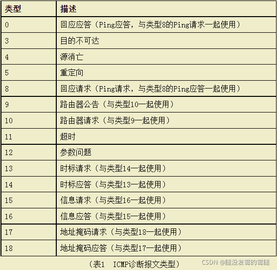 - 类型:标识生成的错误报文,它是ICMP报文中的第一个字段;