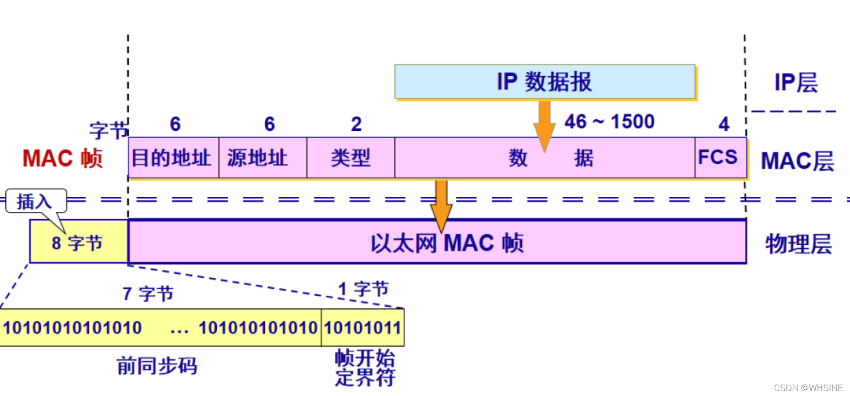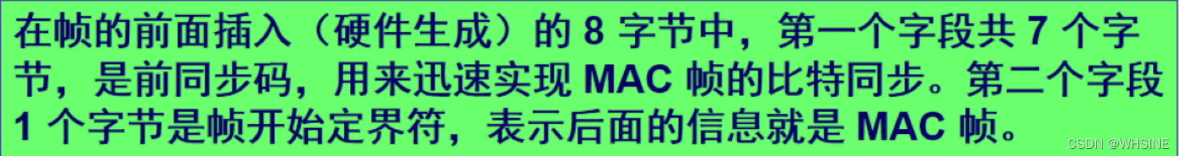 为达到比特同步,在传输媒体上实际传送的要比MAC帧还多8个字节