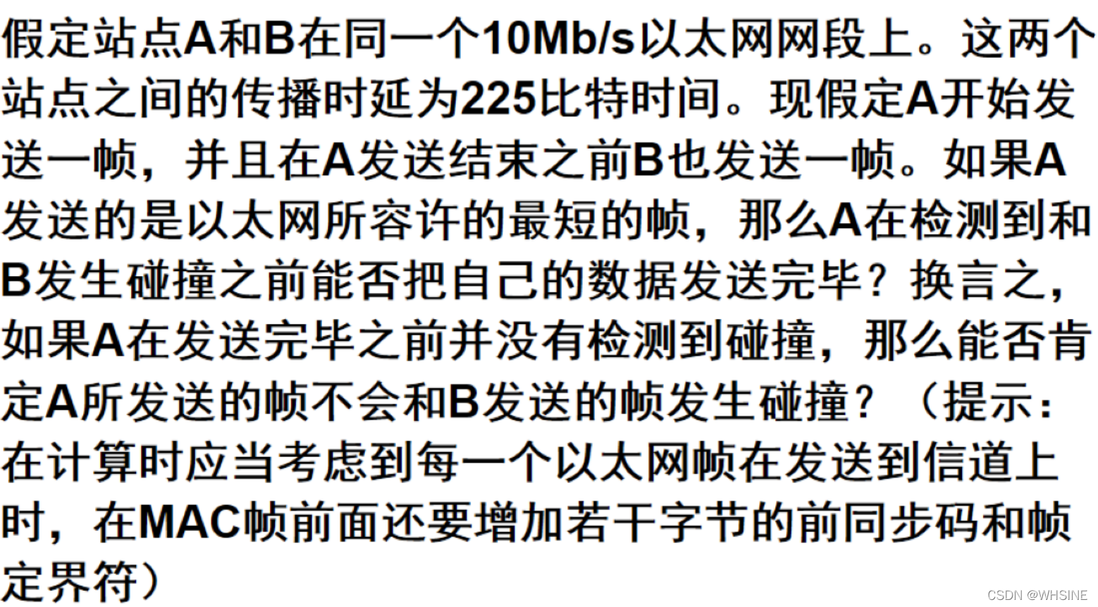 对于本题来说,H3,H4连接的Hub为100Base-T集线器,对于100Base-T以太网来说,其争用期为5.12us, 则其τ为2.56,且有题目可得,Hub再生比特流过程当中会产生1.535us的时延