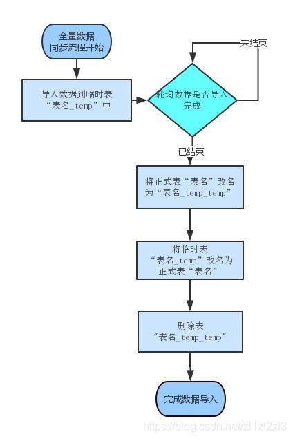 全量数据的导入过程比较简单,仅需要将数据先导入到临时表中,导入完成之后,再通过对正式表和临时表进行ReName操作,将对数据的读取从老数据切换到新数据上来。