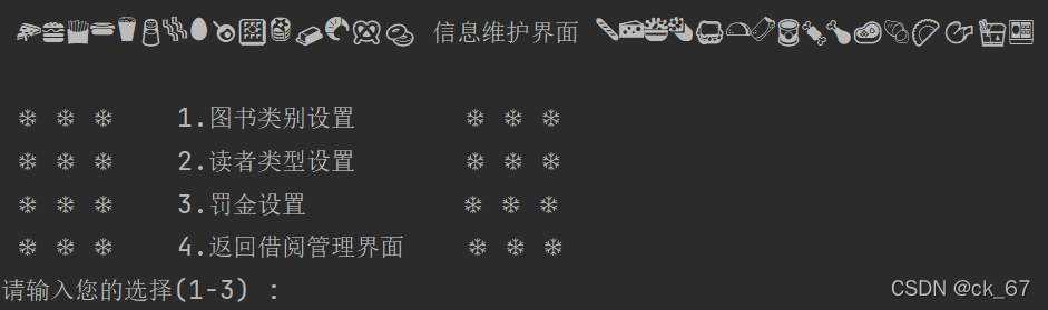 该模块下有,读者类别的设置,图书类别的设置,还有罚金的设置;