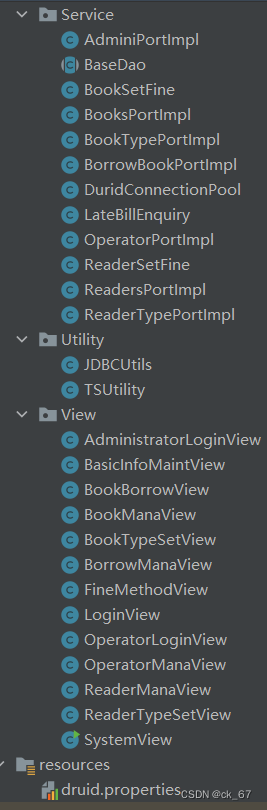功能实现包Service(放的各个功能的实现类);