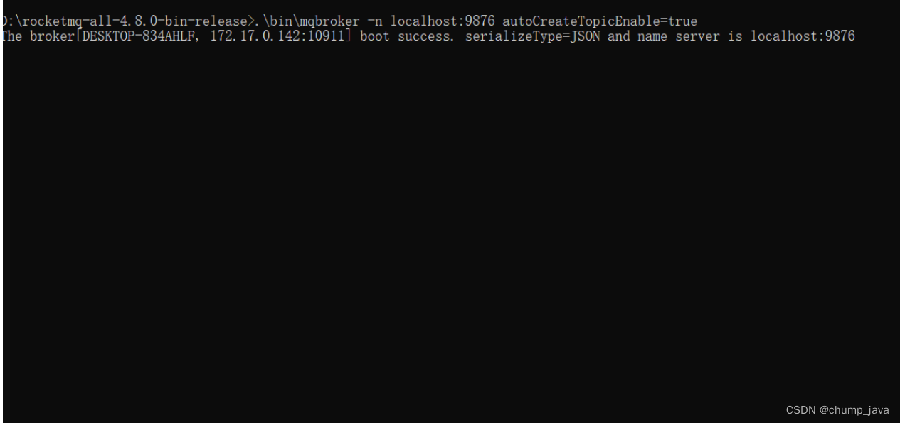 windows非正常关闭rocketMQ后启动mqbroker.cmd闪退删除c盘用户下store文件夹里所有文件重新启动rocketMQ就可以了(93419是我的登陆用户)启动成功 版权声明:本文为m0_49357632原创文章,遵循CC 4.0 BY-SA版权协议,转载请附上原文出处链接和本声明。原文链接:https://blog.csdn.net/m0_49357632/article/details/126321254