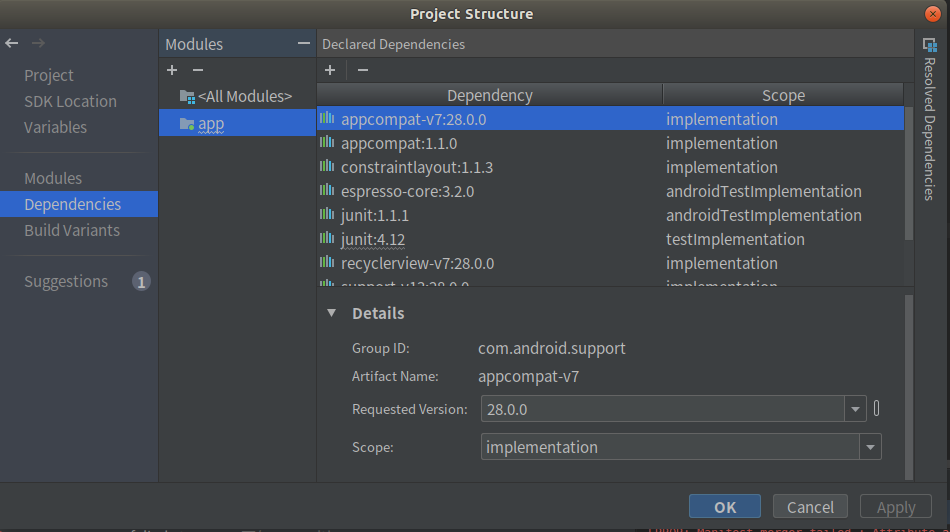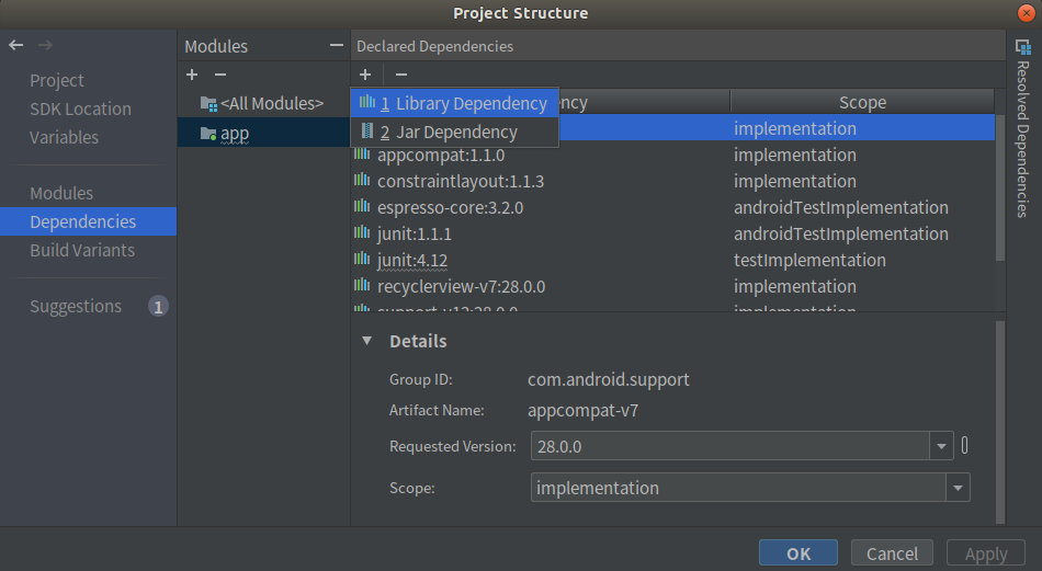 添加完这四个库后,还不能生效,因为系统中默认使用的是androidx的库包。