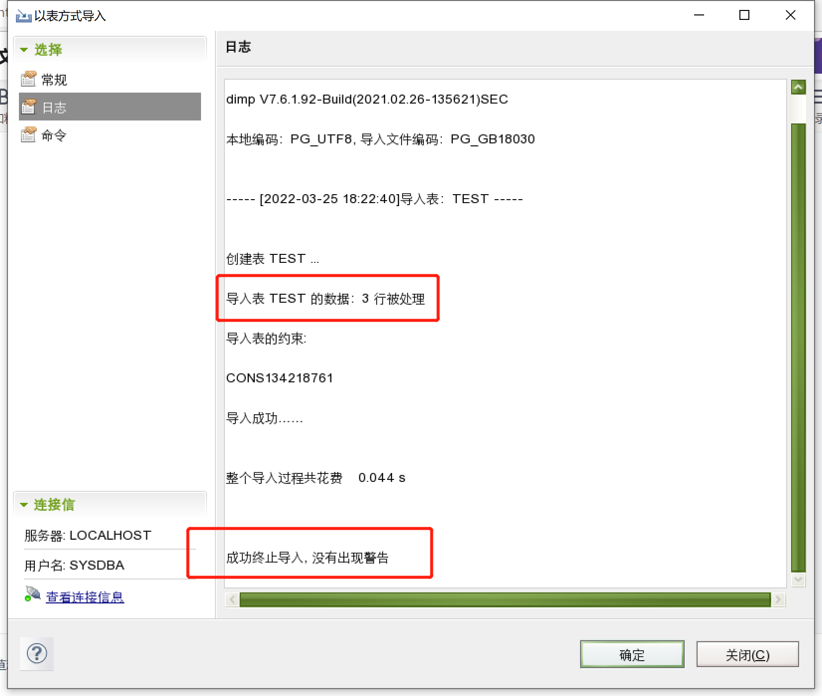 用户名:SYSDBA