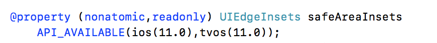 iOS11 引入了安全区域的概念,默认情况下安全区域是指 NavigationBar 以下 TabBar 以上的区域(iPhoneX 则不包括底部的虚拟 Home 区域),也就是说 StatusBar、NavigationBar、TabBar、虚拟 Home 都不是安全区域(可参见图 2)。为了帮助开发者判断各个 view 与安全区域的距离关系,iOS11 在 UIView 加入了一个属性: