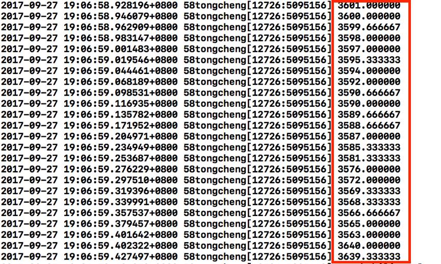 当下拉返回顶部时,contentOffset 的 Y 值会产生一系列不连续的跳动,如当前 contentOffset 的 Y 值为 3600,下拉后变为 3500 左右然后又变为 3600 左右,如图 12 打印所示: