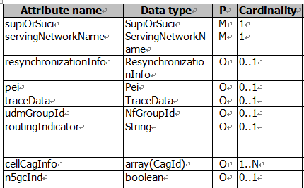 携带的参数类型为:AuthenticationInfo,具体的字段信息如下图,我们常见到的IE为SUPI或者SUCI,及SNN: