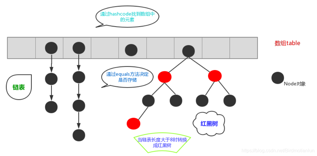 哈希表存储采用数组+链表+红黑树实现,当链表长度超过阈值(8)时,将链表转换为红黑树