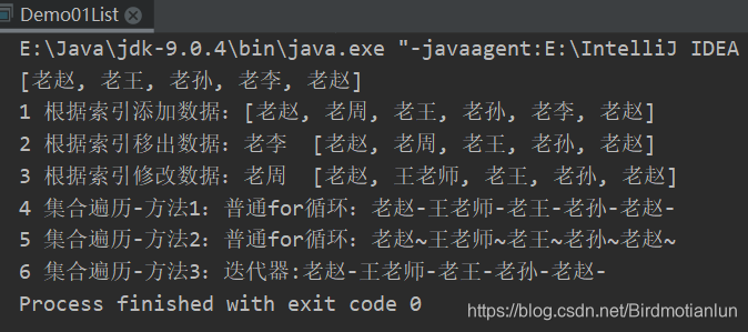 System.out.println("1 根据索引添加数据:"+list);//根据索引添加数据:[老赵, 老周, 老王, 老孙, 老李, 老赵]