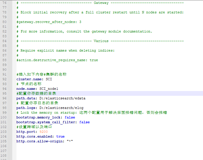 修改D:\elasticsearch\elasticsearch-6.7.0\config下的elasticsearch.yml配置文件