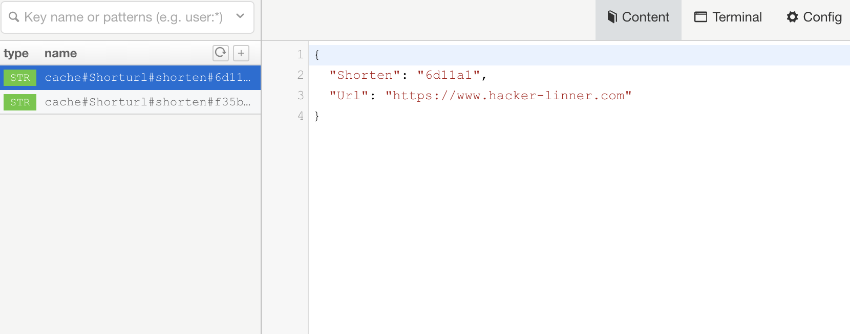 curl -i "https://shorturl.hacker-linner.com/expand?shorten=6d11a1"利用工具查看 Redis 与 Etcd 中的键值对