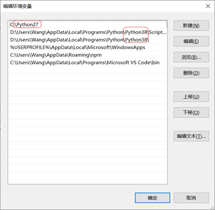 【特别提示:如果你安装了多个版本Python,请在环境变量中将版本的安装路径放在最前面,参见下图: