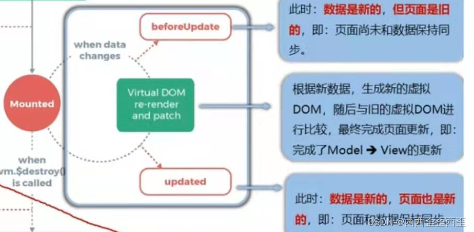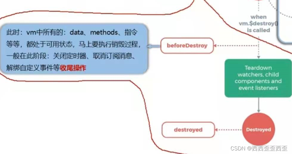 3.一般不会再beforeDestroy操作数据,因为即便操作数据也不会再触发更新流程了