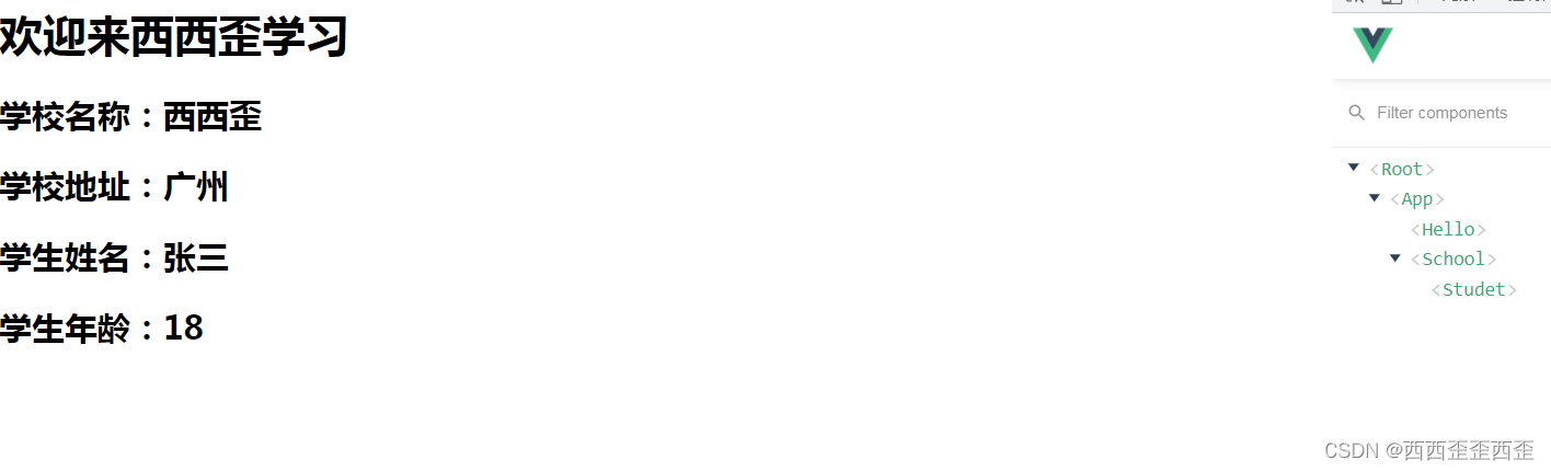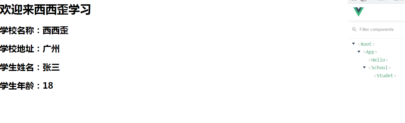 <组件名></组件名> <School></School>
