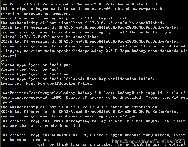 。。。注意:执行上述命令会要求输入slave的password 可能需要先在各个slave设置root密码(输入 passwd,按提示操作即可)