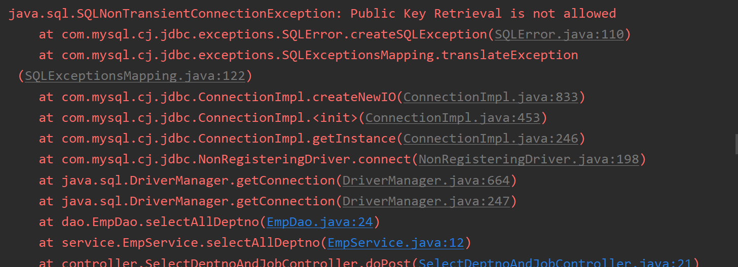 出现了SQLNonTransientConnectionException: Public Key Retrieval is not allowed