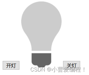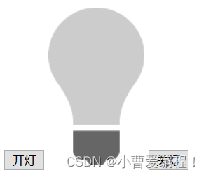 开灯按钮,效果就是上面右图效果;当我点击关灯按钮,效果就是上面左图效果。其他这个功能中有两张灯泡的图片(使用img标签进行展示),通过修改 img 标签的 src 属性值改变展示的图片来实现。