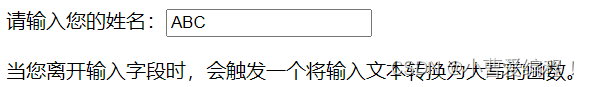 onblur失去焦点事件。如下图,当点击了输入框后,输入框就获得了焦点;再点击页面其他位置,那输入框就失去焦点了。下图示例是将输入的文本转换为大写。