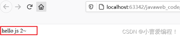 <!DOCTYPE html> <html lang="en"> <head> <meta charset="UTF-8"> <title>Title</title> </head> <body> <script> document.write("hello js 2~");//写入html页面 </script> </body> </html>上面代码通过浏览器打开,我们可以在页面上看到