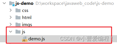 script标签中使用src属性指定 js 文件的 URL 路径。<!DOCTYPE html> <html lang="en"> <head> <meta charset="UTF-8"> <title>Title</title> </head> <body> <script src="../js/demo.js"></script> </body> </html>==注意:==