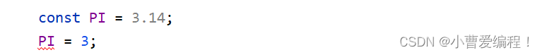 我们可以看到给 PI 这个常量重新赋值时报错了。