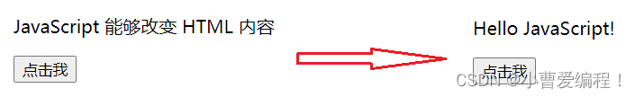 点击我按钮,按钮上面的文本就改为上面右图内容,这就是js 改变页面内容的功能。