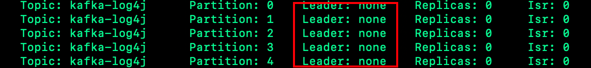 可以看到Leader参数的值为none,即该主题没有Leader 副本