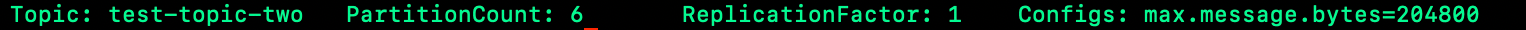 ./kafka-topics.sh --zookeeper localhost:2181 --alter --topic test-topic-two --config max.message.bytes=204800执行结果如下: