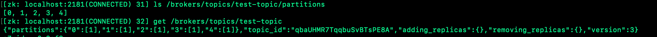 登录ZooKeeper客户端查看所创建的主题元数据信息,“test-topic”元数据信息如下: