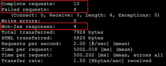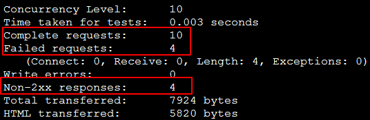 处理了10个连接请求,其中失败了 4 个,成功了 6个。