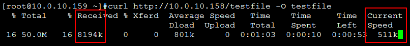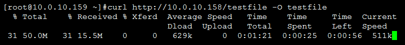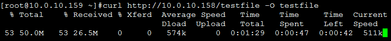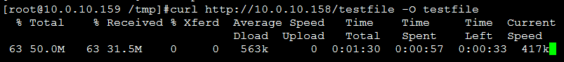 [root@10.0.10.158 /usr/local/nginx/html]#dd if=/dev/zero of=testfile bs=1M count=50